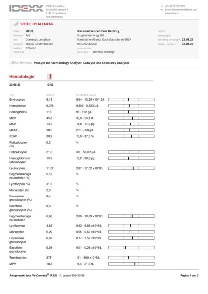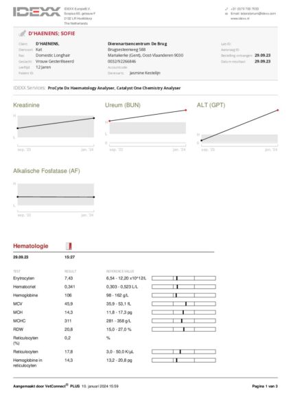 Ik heb inmiddels contact gehad met Boehringer. Over 3-4 weken komt ze terug met het katje en dan doen we nogmaals…