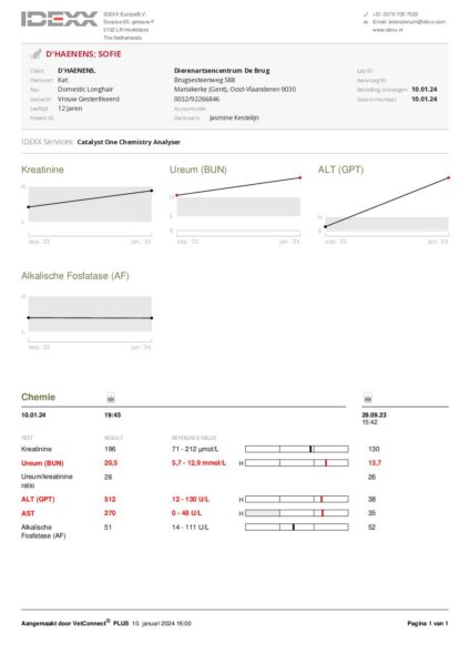 Anamnese: Initieel kwam de eigenaar (in augustus 2023) omdat het katje veel dronk, veel at…