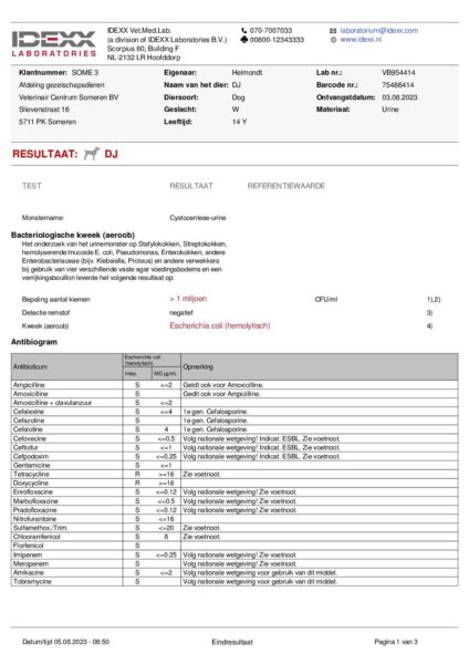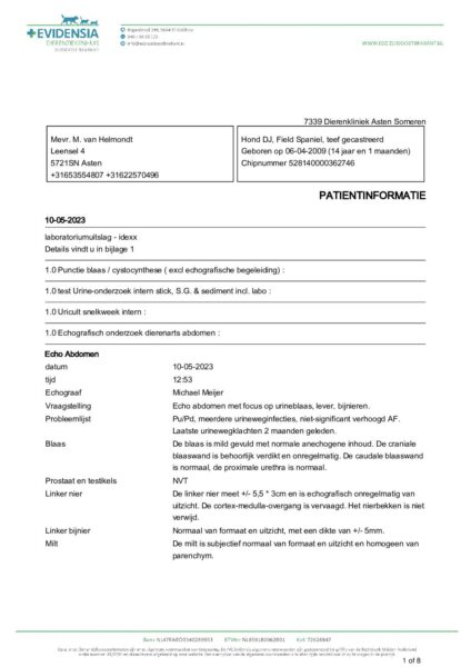 Its about a field spaniel, female castrated, 14 year old that 14 months ago had for a first time lower urinary tract symptoms. Back then, we did a culture which was positive with Ecoli and we subscribed antibiotics according with…